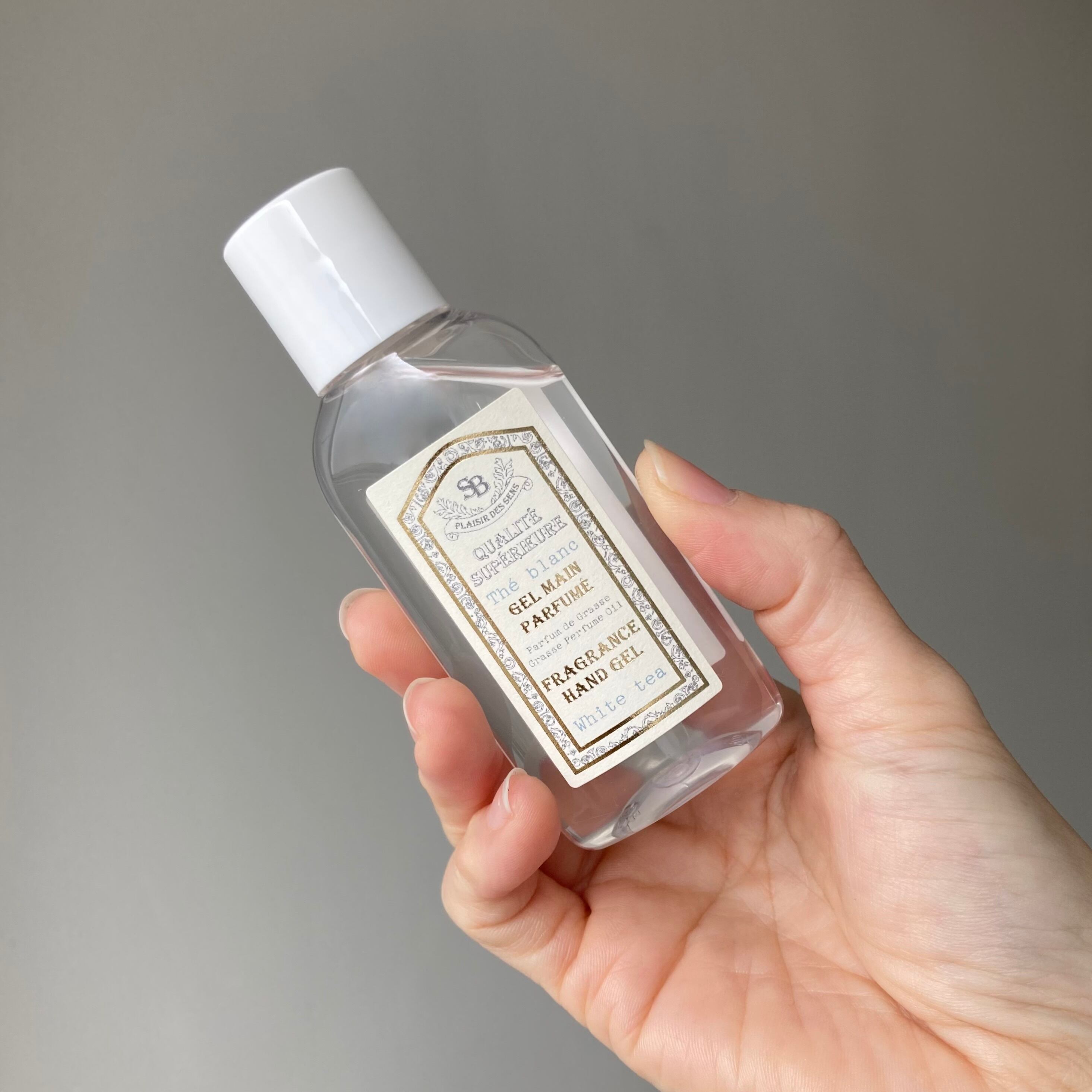 除菌と保湿を同時にすることができるホワイトティーの香りのハンドジェル。