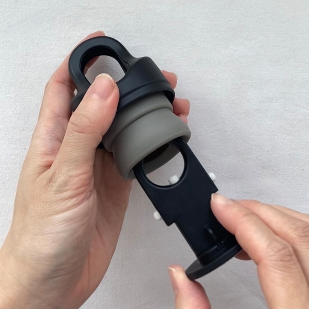 キャップセットが空いている状態で、両手で底のリングを引き抜くと、