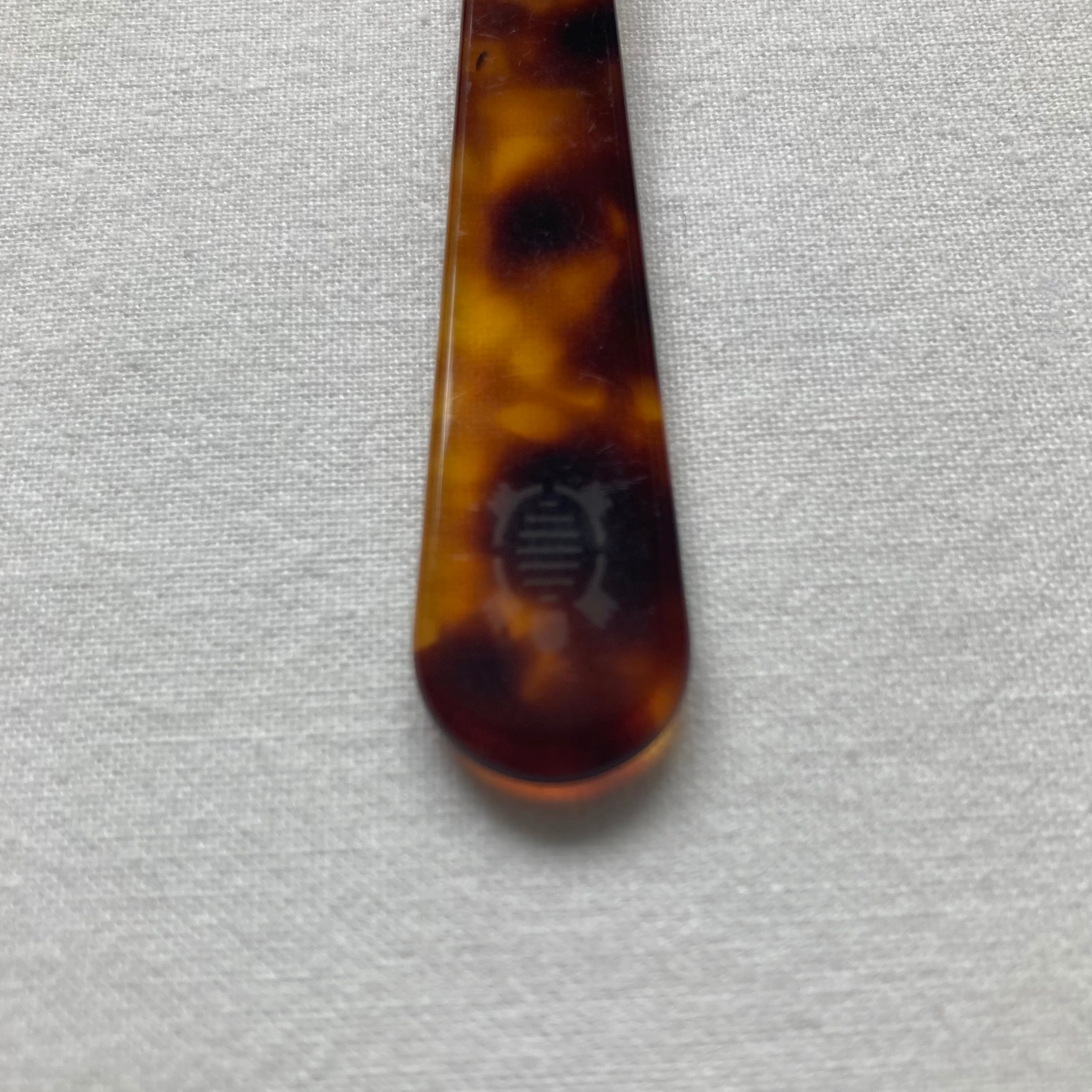 1862年ドイツに創業し、当初はべっ甲工場としてヨーロッパで最大級の規模を誇りましたが、亀の保護意識の高まりにより、1930年代には、環境負荷が低く且つべっ甲と同じ質感のアクリル素材に切り替えました。その結果、160年前から伝わる手作業中心の丁寧な製造方式は変えずに、カラフルで美しい商品展開ができるようになりました。当初名残でロゴマークが亀の形になっています。