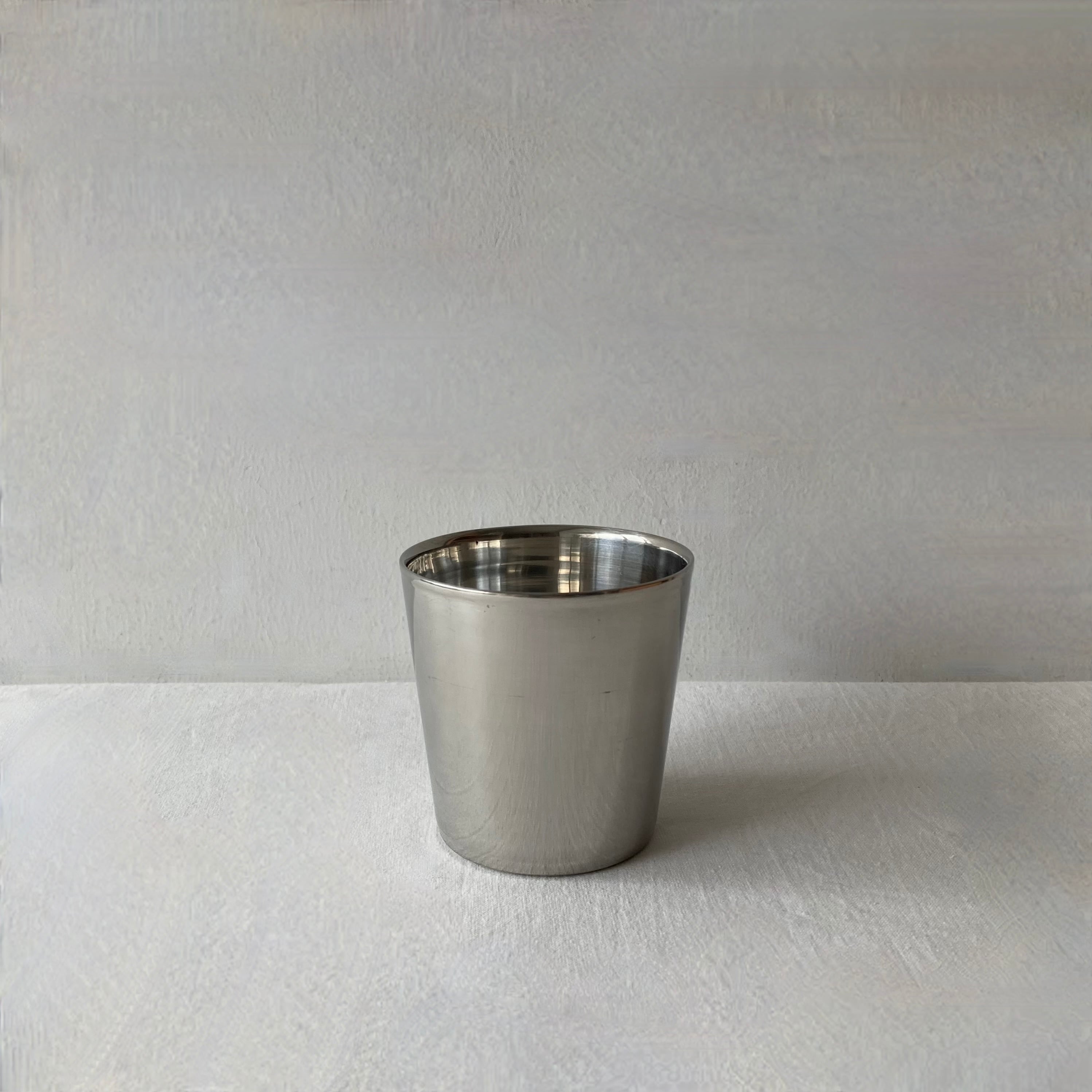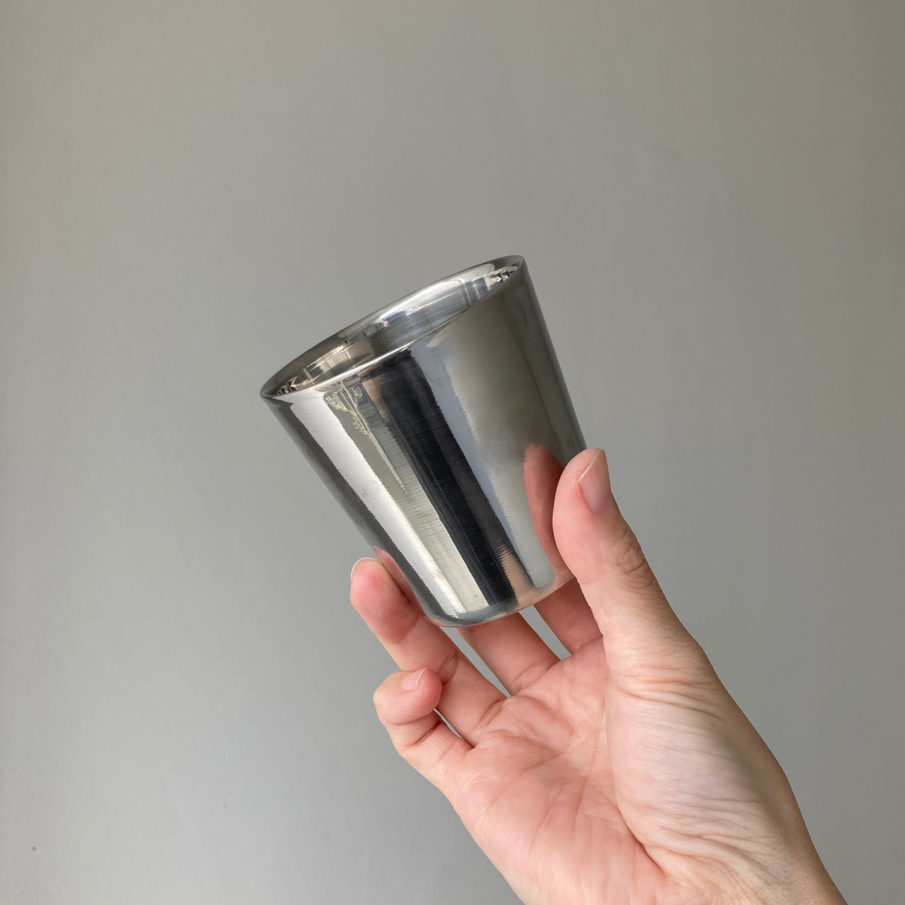 ステンレス素材のスッキリとした小ぶりのコップです。