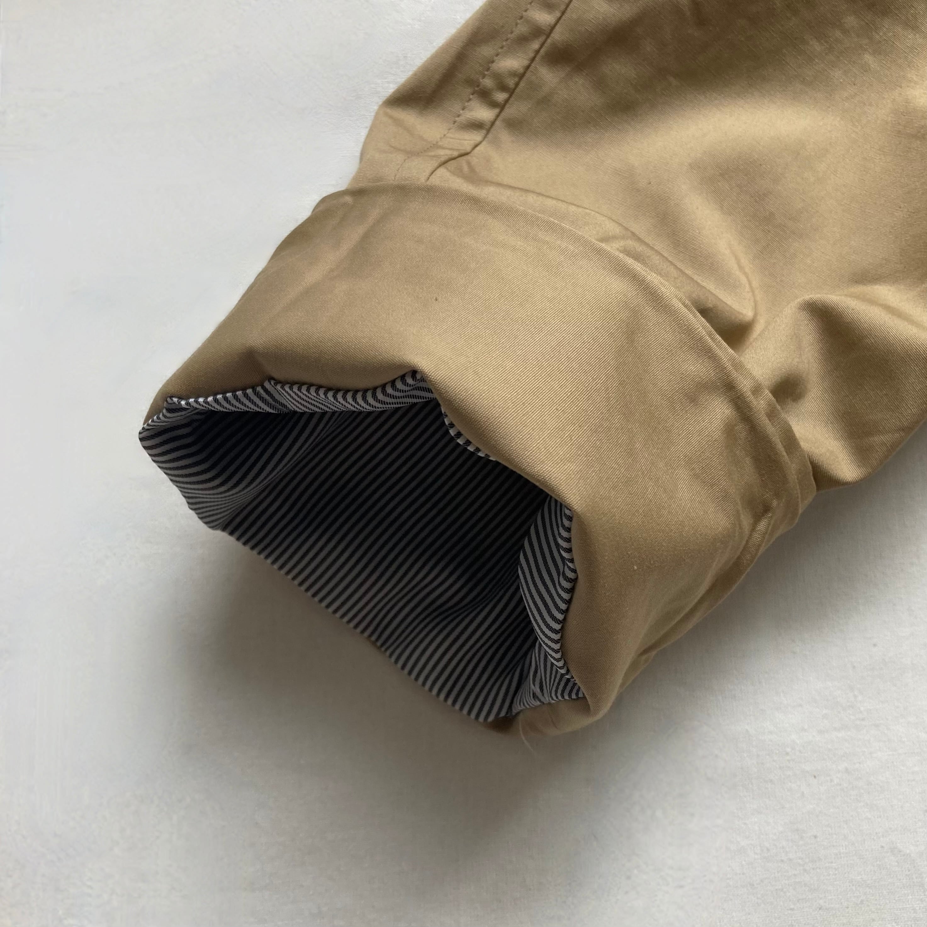 また、袖口の裏地へ表地の生地を長めに使うことで、
