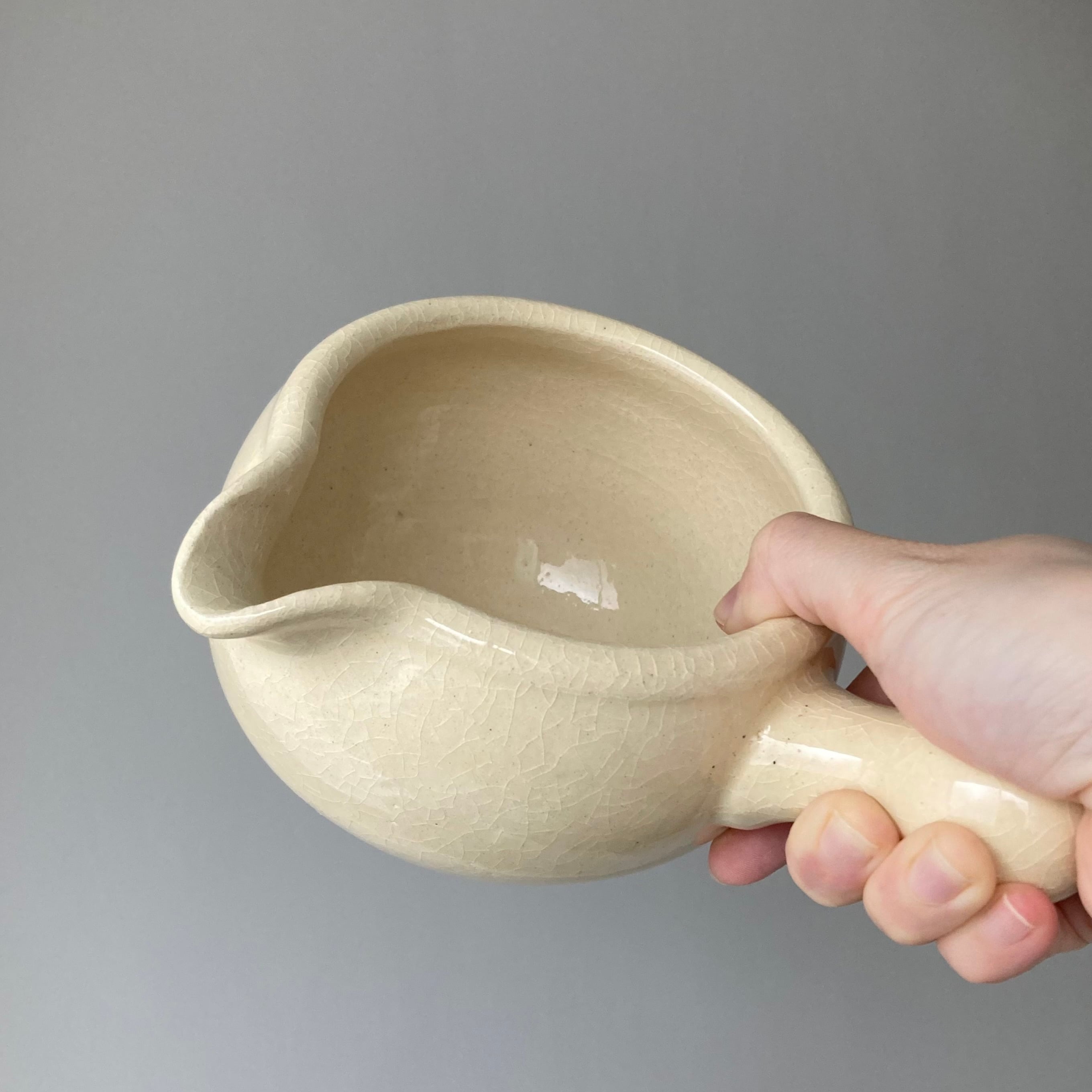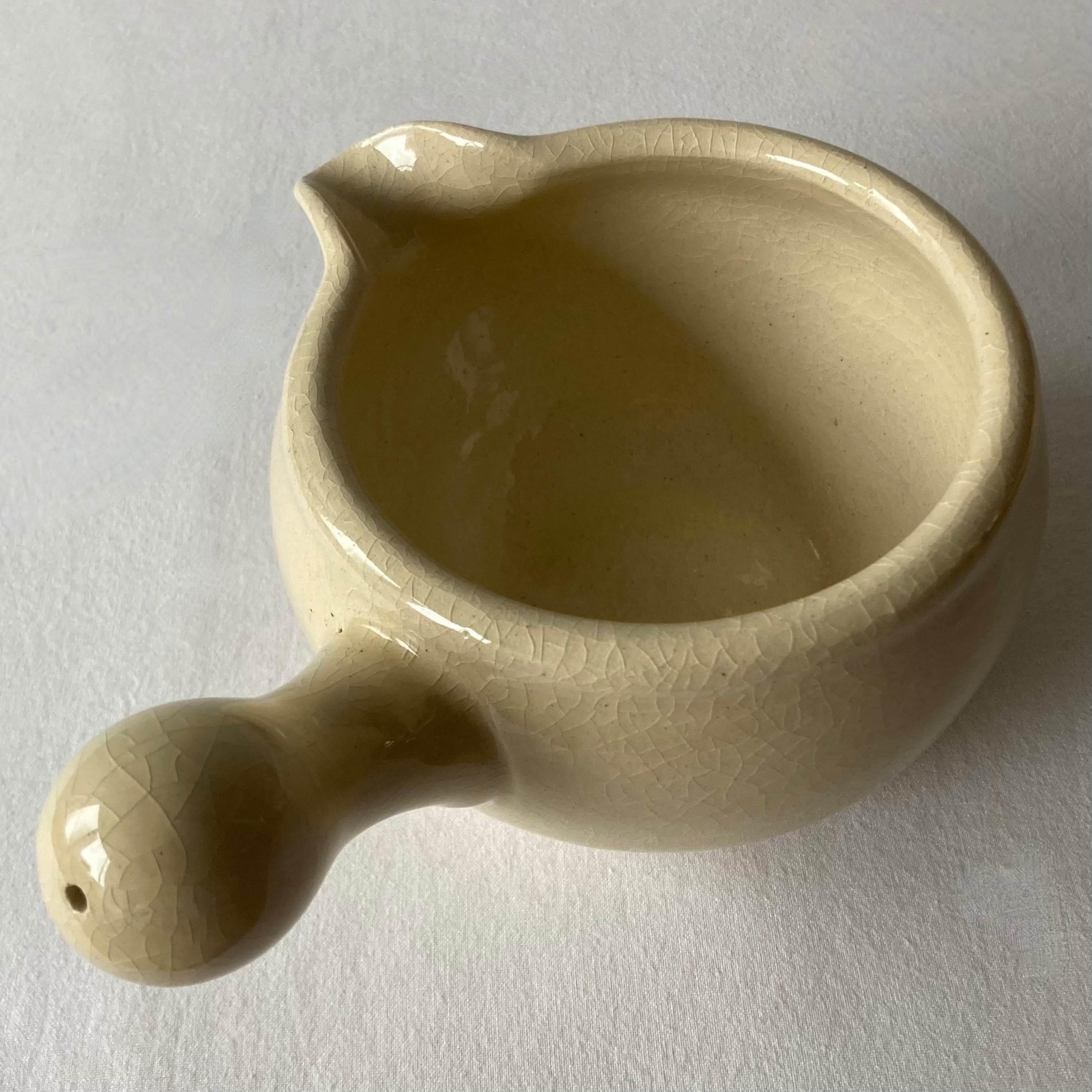 丸いフォルムが可愛らしい注ぎ口の付いている土鍋です。