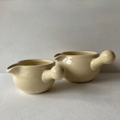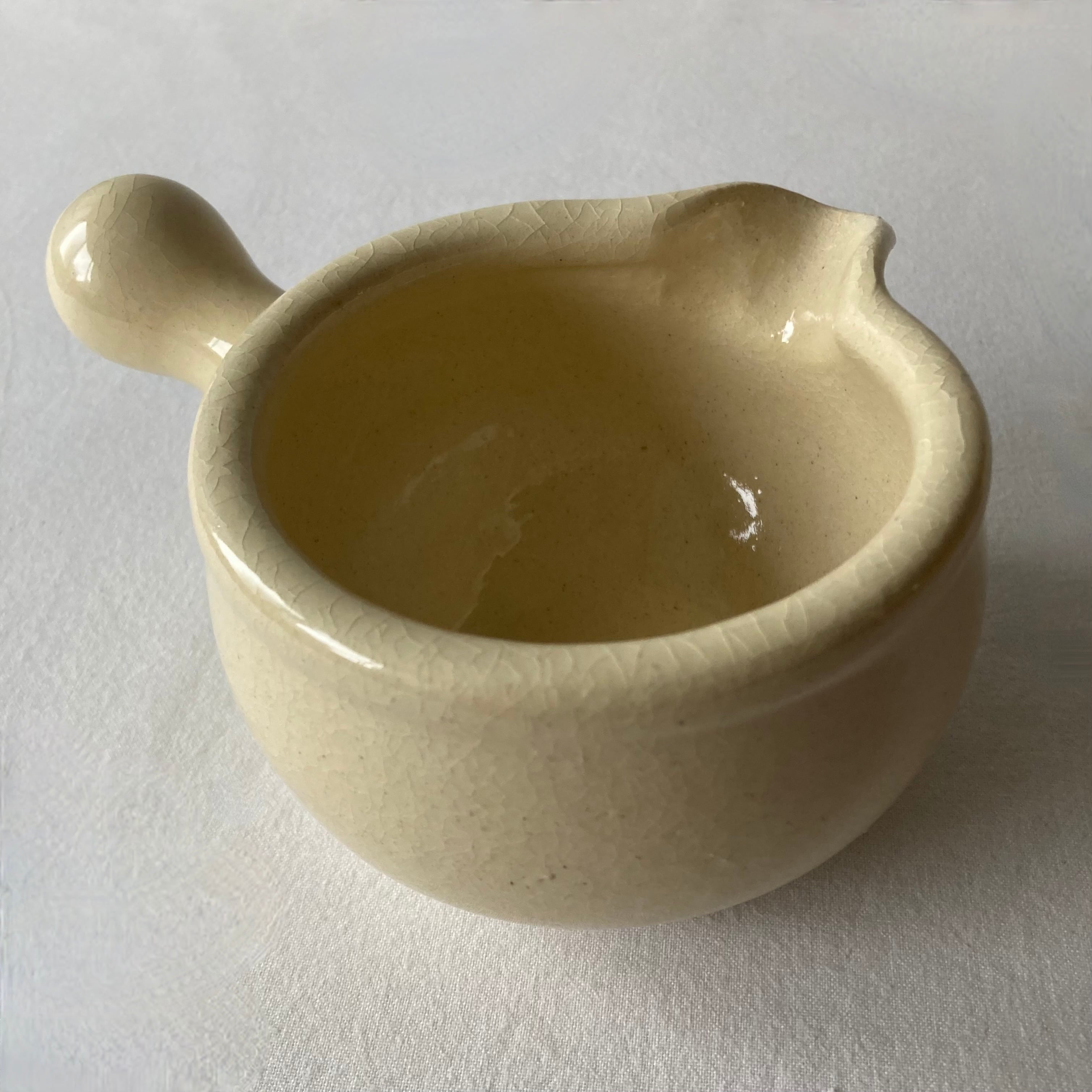 丸いフォルムが可愛らしい注ぎ口の付いている土鍋です。