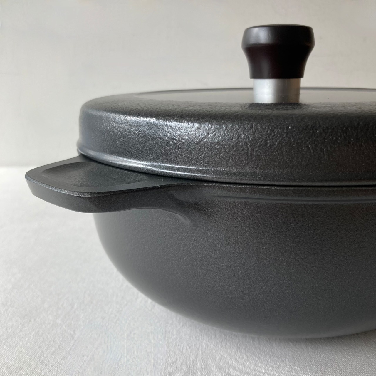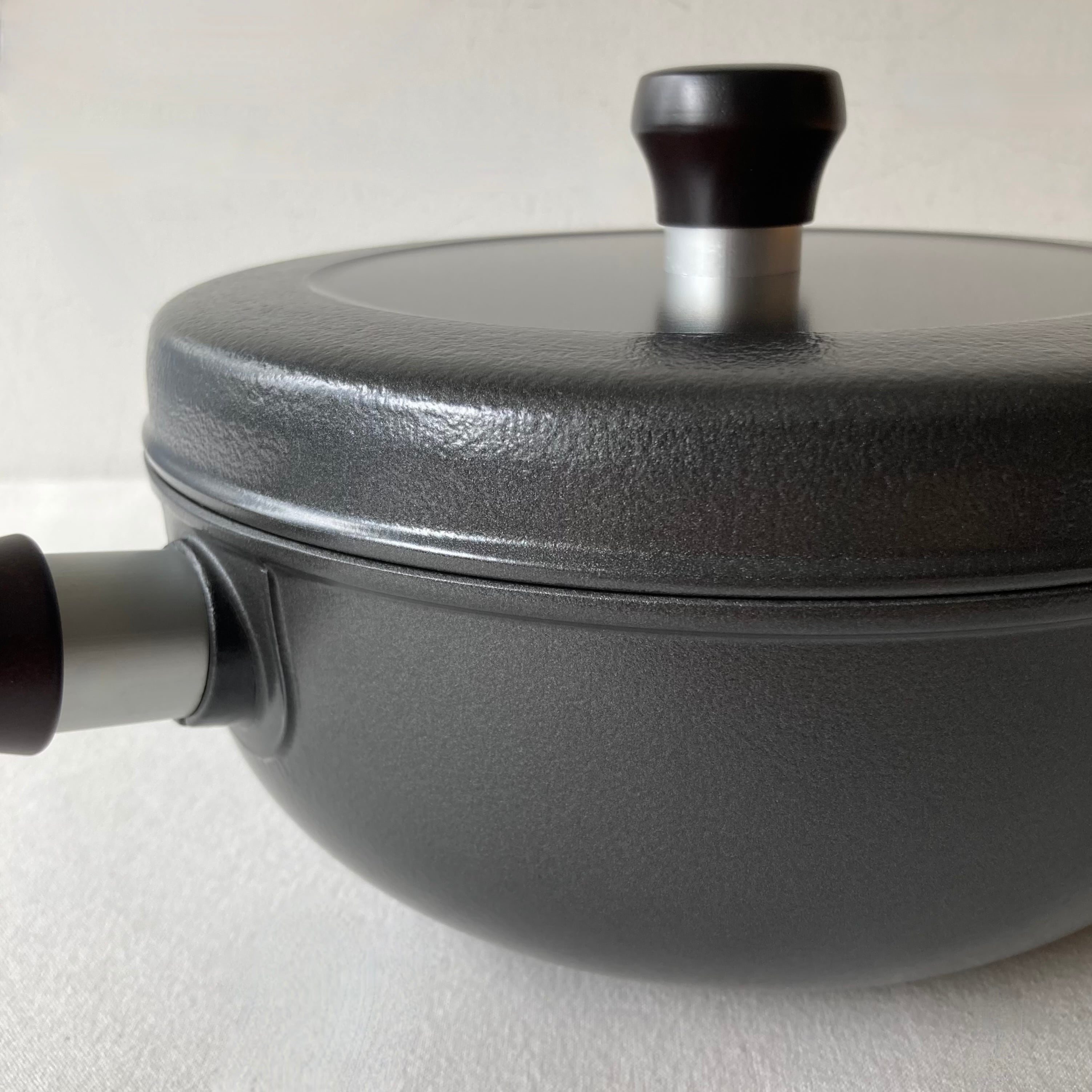 「フタ」は密閉性を高める為、あえて重く作られていますが、素材としてのアルミは軽量なので、鍋全体で考えると鉄やステンレスの鍋よりも幾分軽く感じます。一体成型で丈夫です。