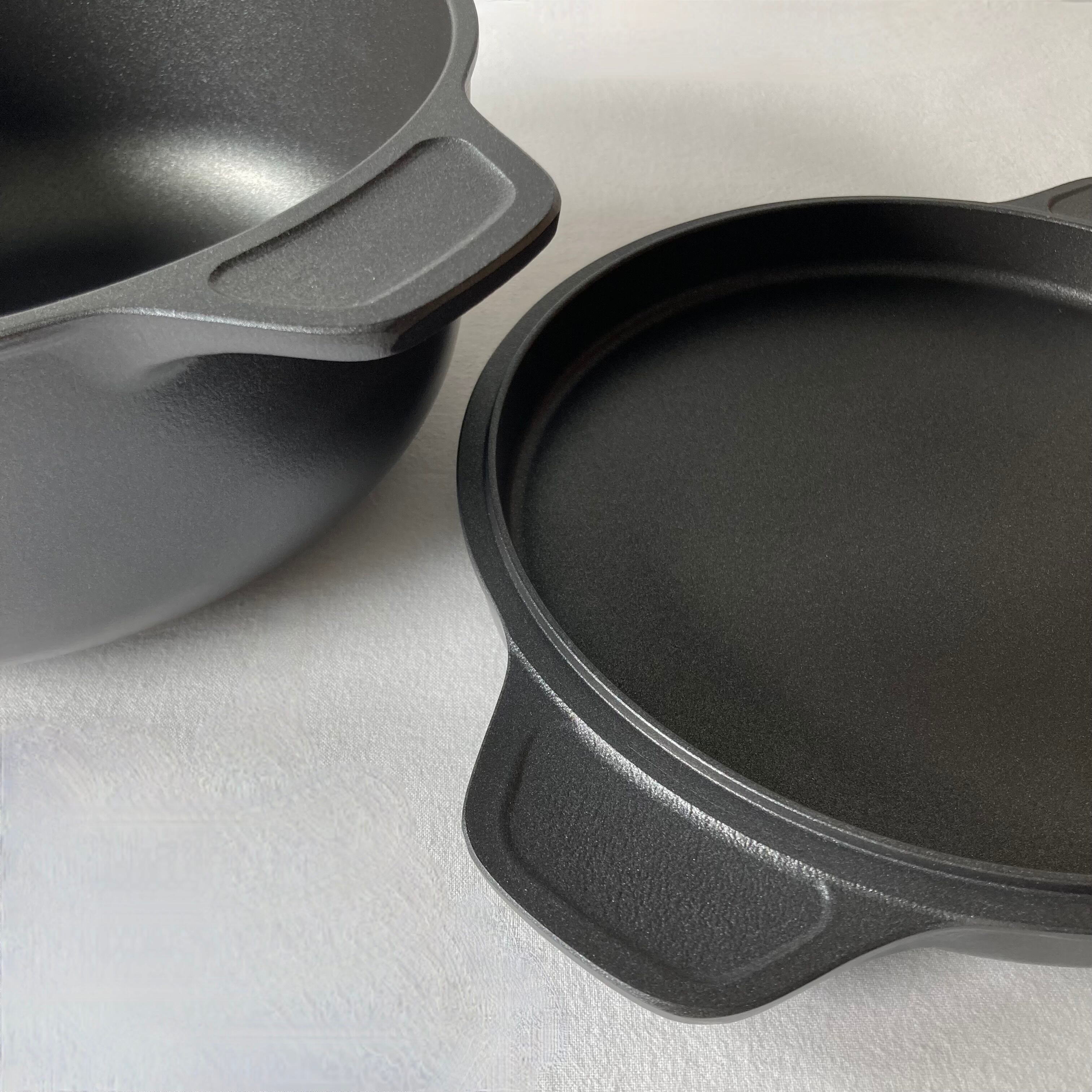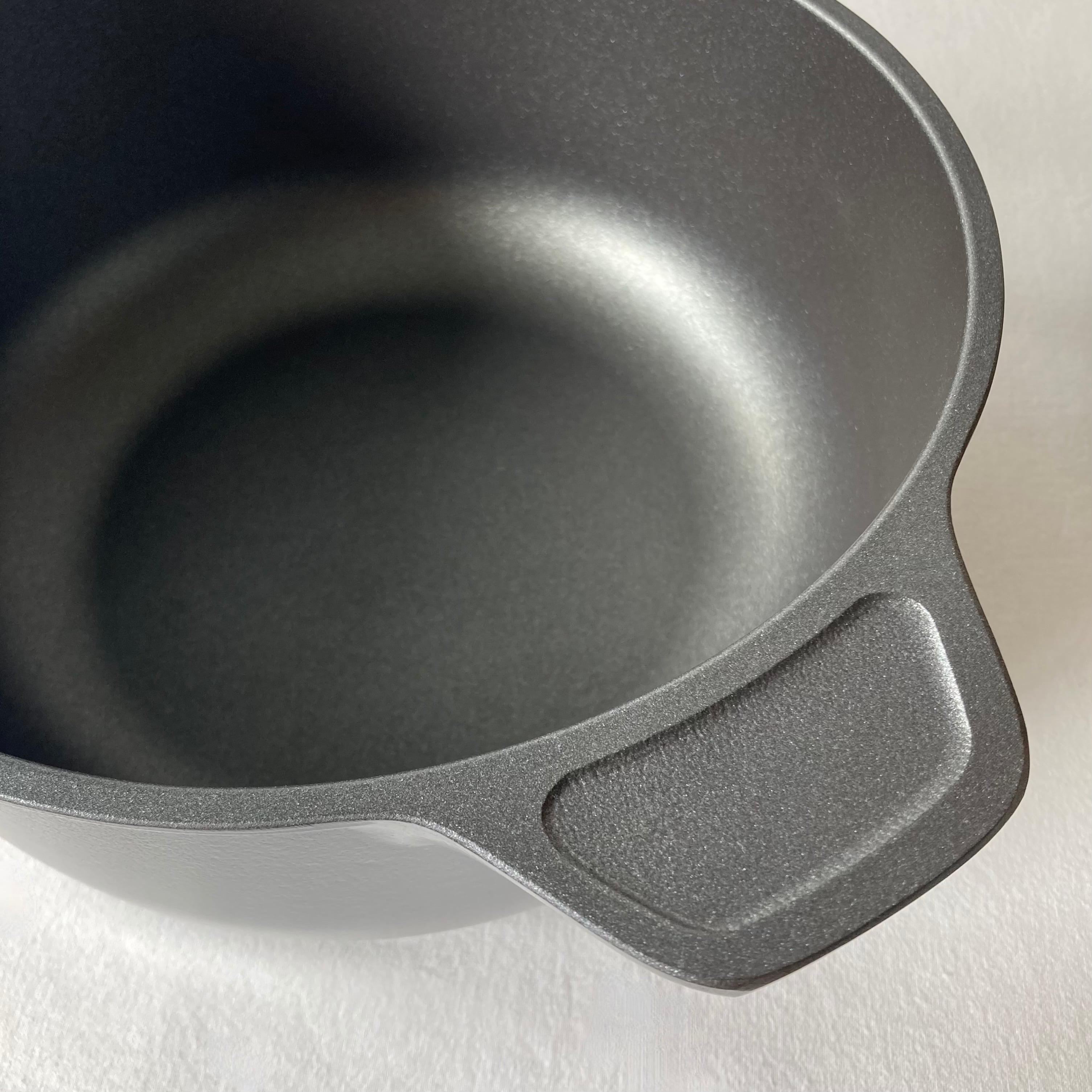 アルミ鋳物の表面にフッ素コーティングがされた鍋です。