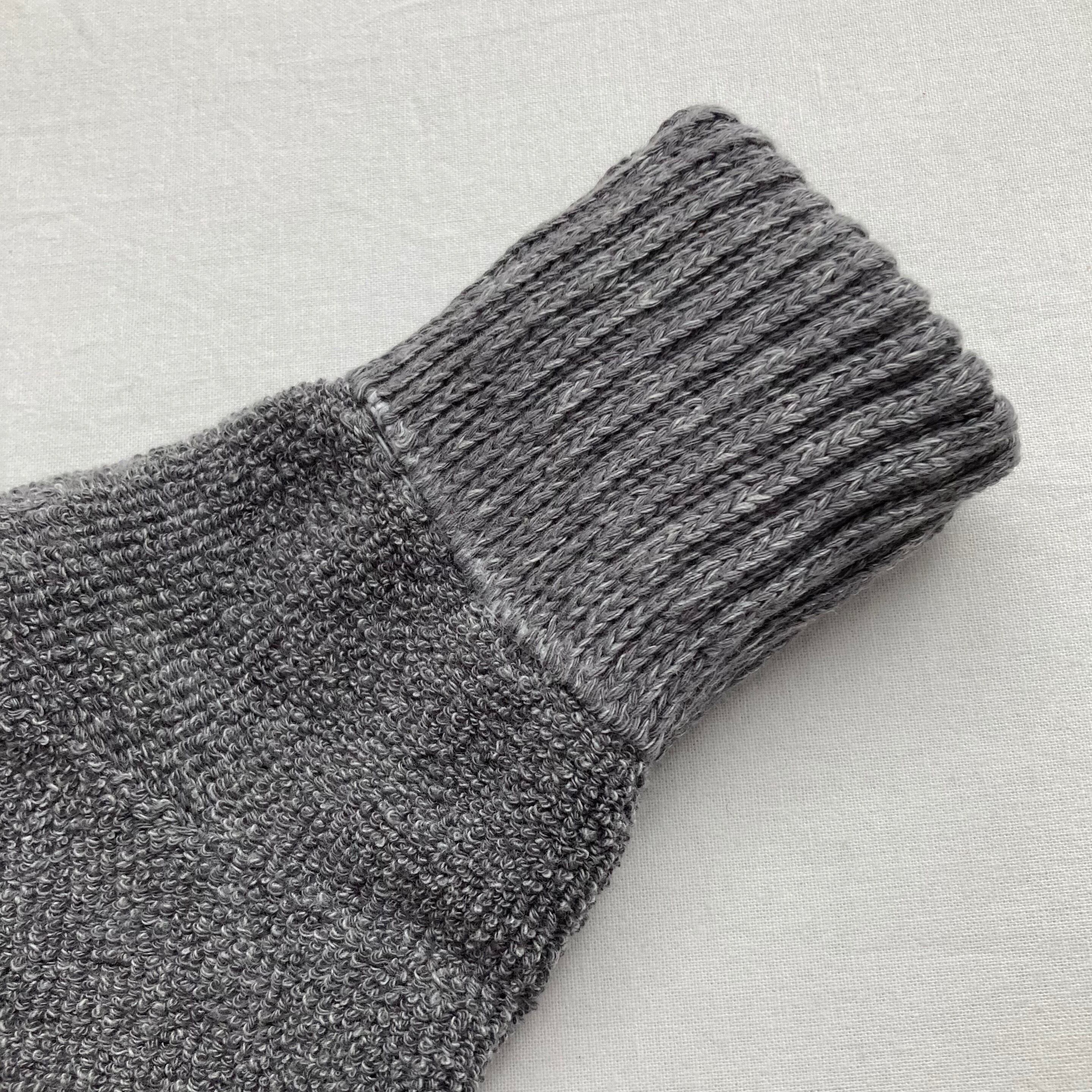 旧式低速編機でゆっくりと編み立てられた、心地よいふんわりパイル。