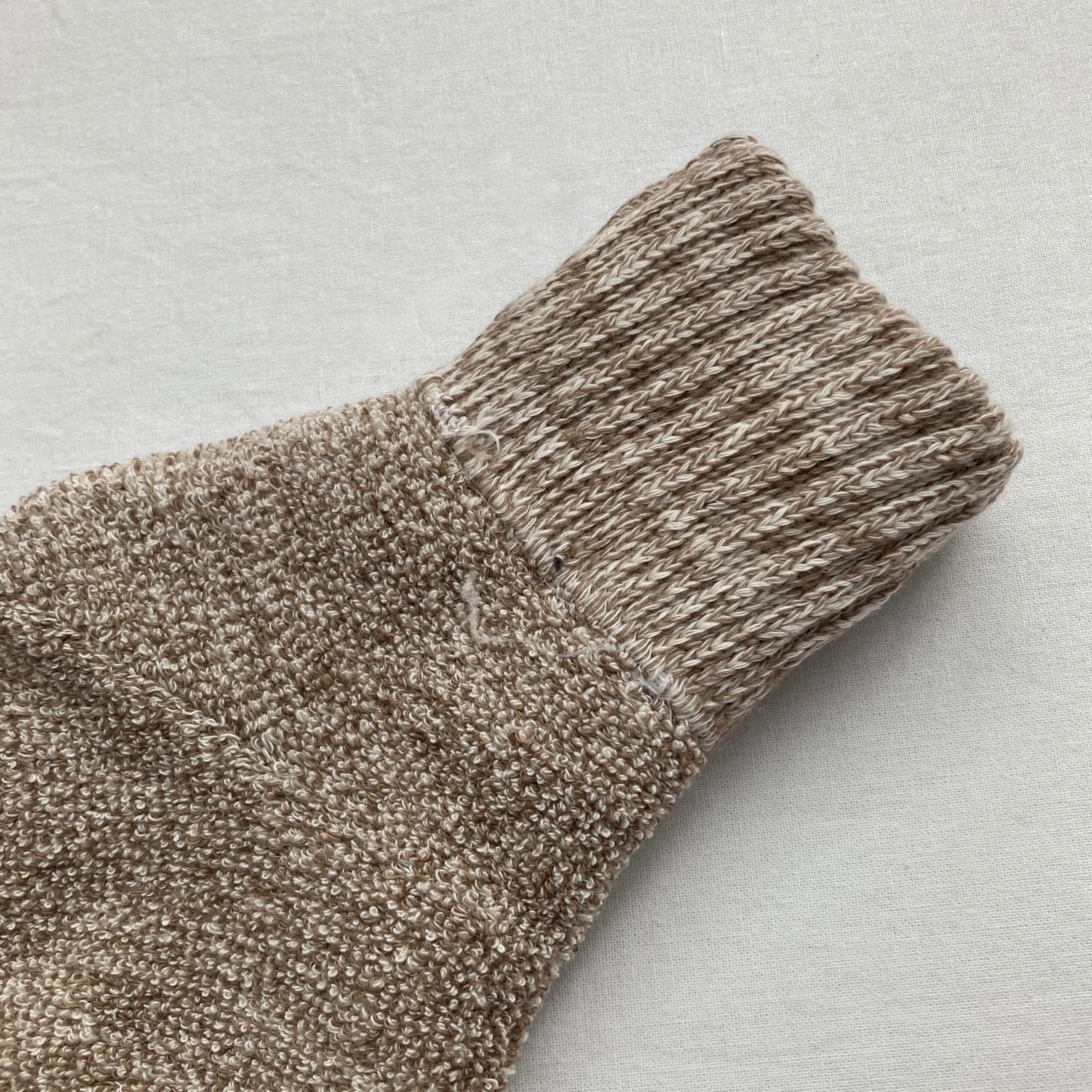旧式低速編機でゆっくりと編み立てられた、心地よいふんわりパイル。