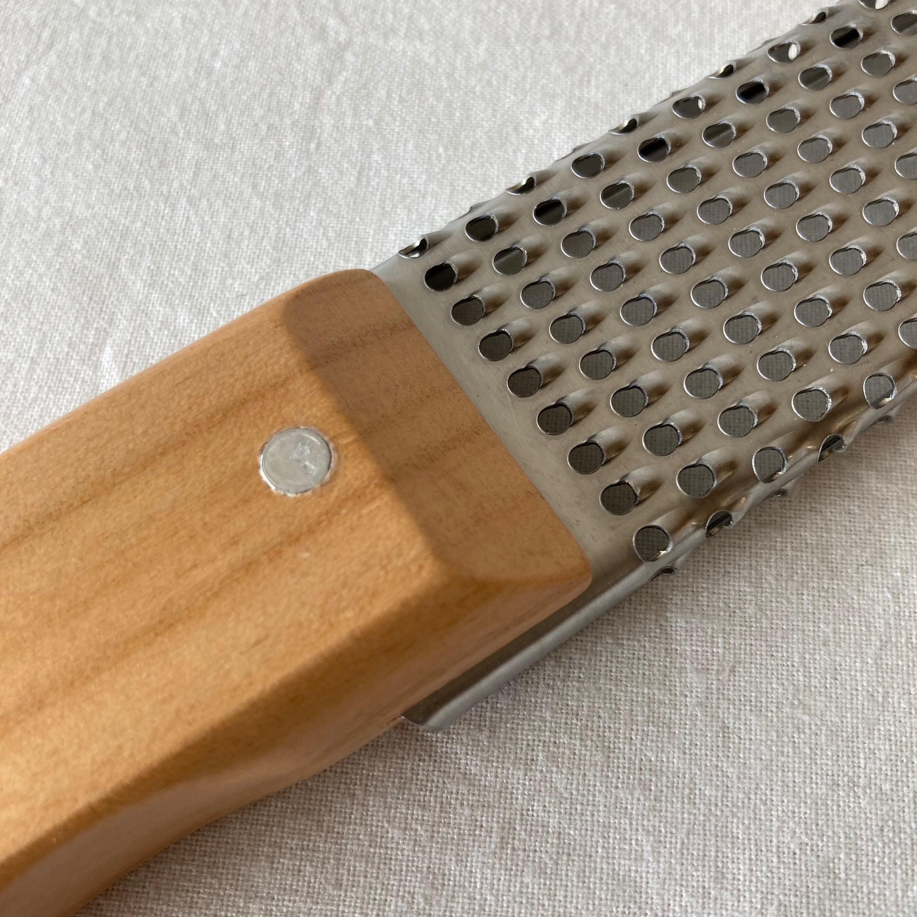 イタリア製の持ち手が木になっているステンレスグレーター(スモールタイプ)です。