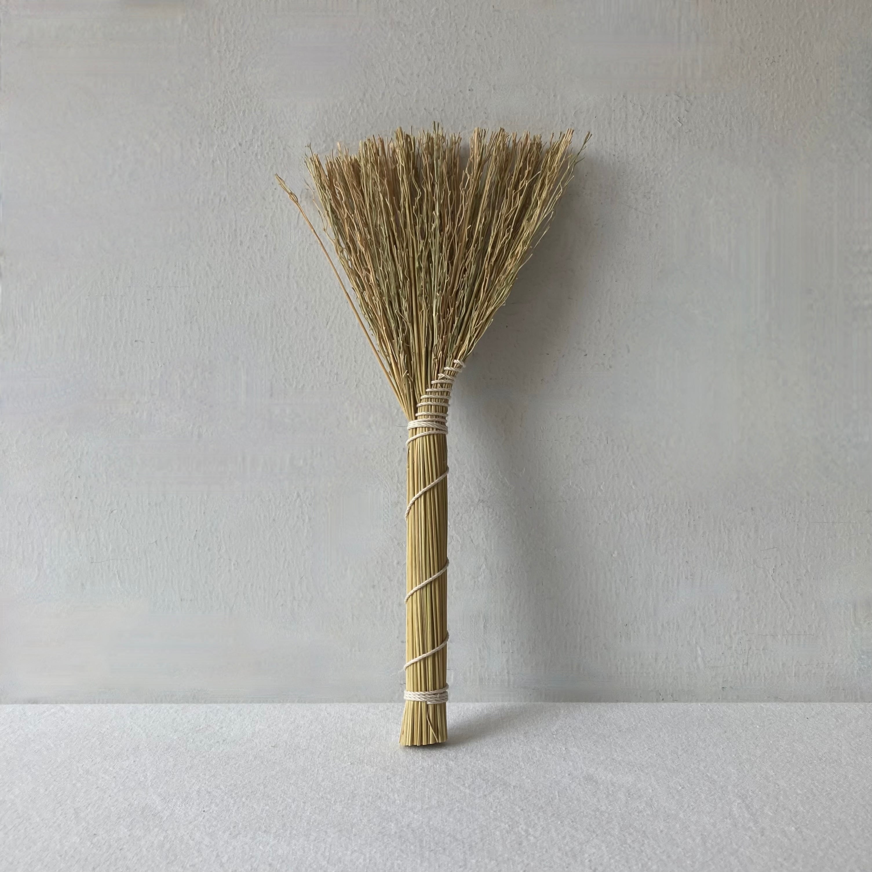 稲穂の籾の部分を取り除いて茎についている部分から切り離して作られたほうきで