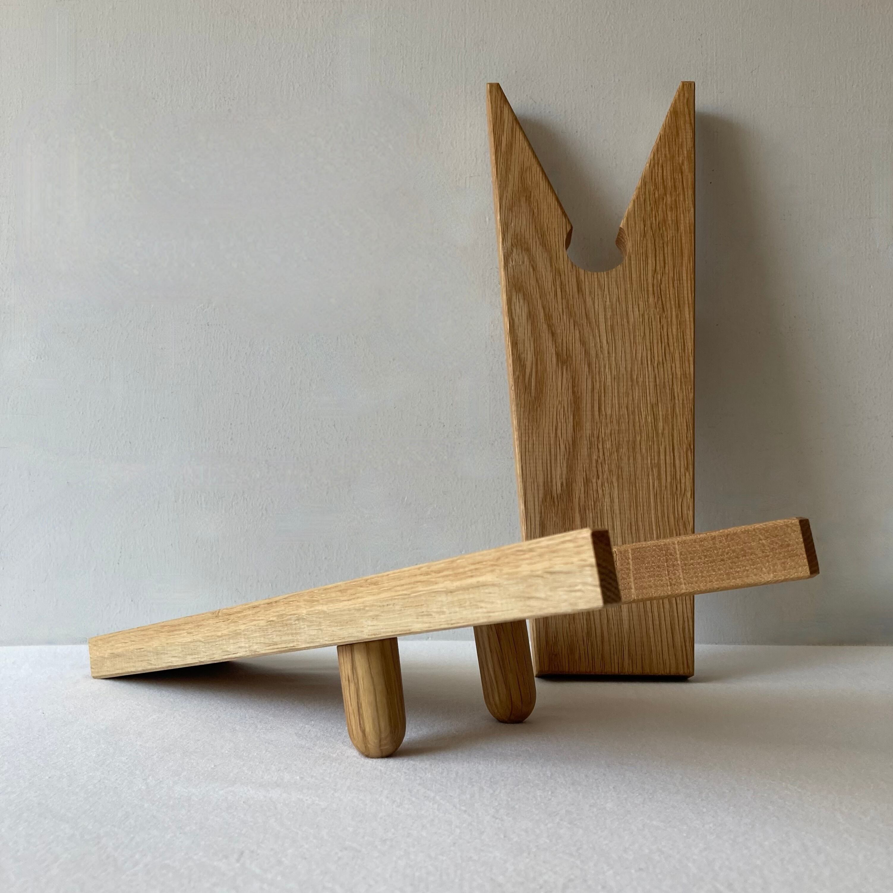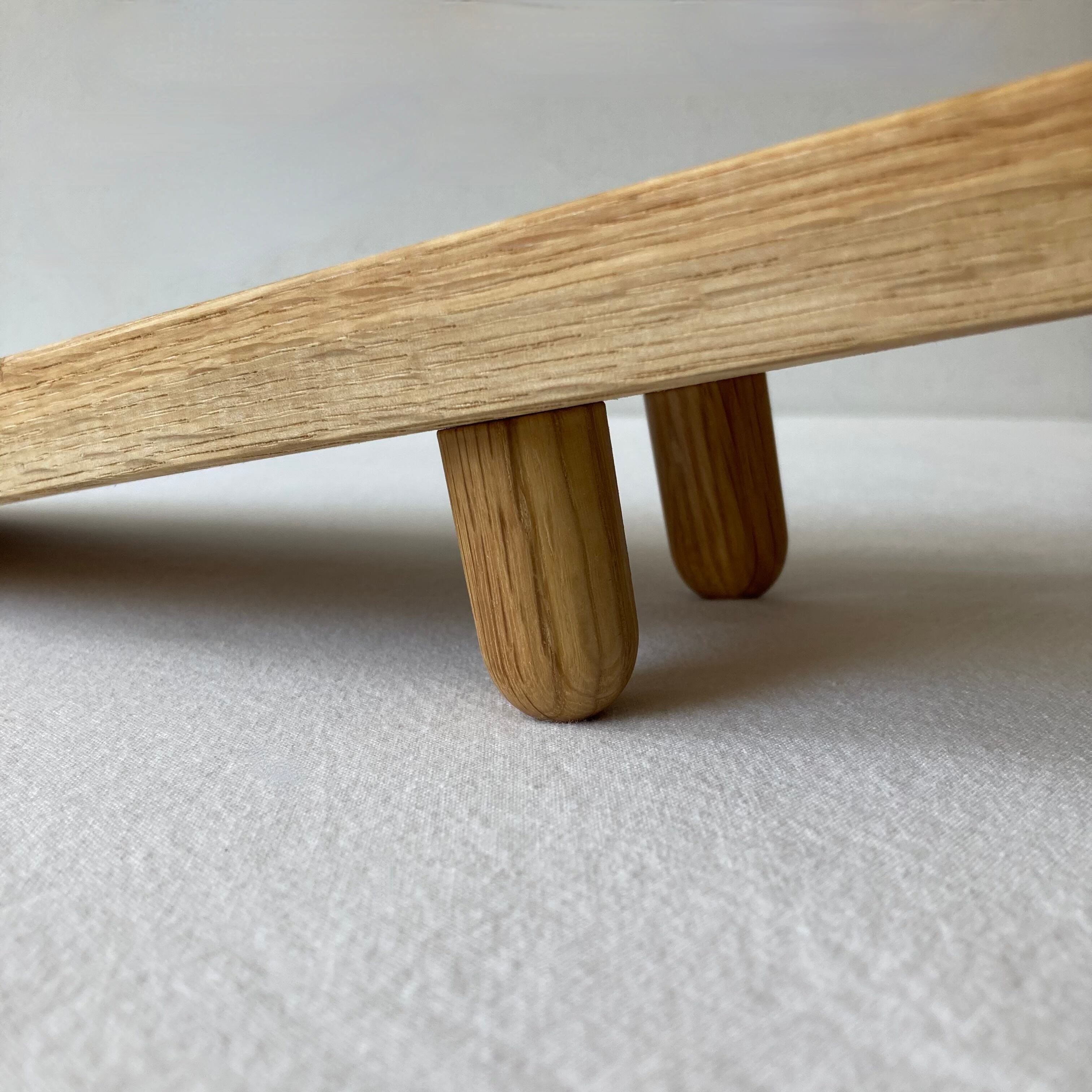 オーク材の重厚な雰囲気と丸い脚のデザイン、