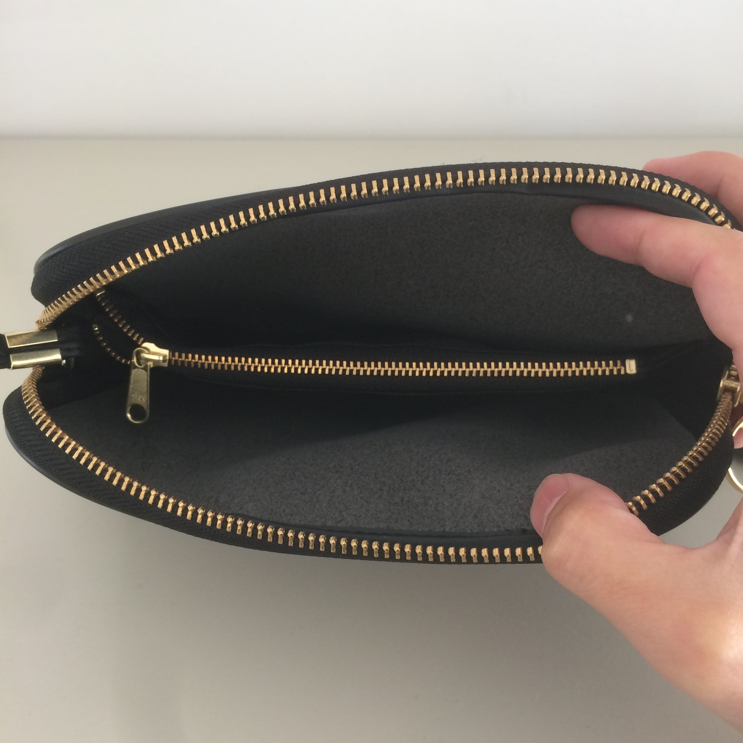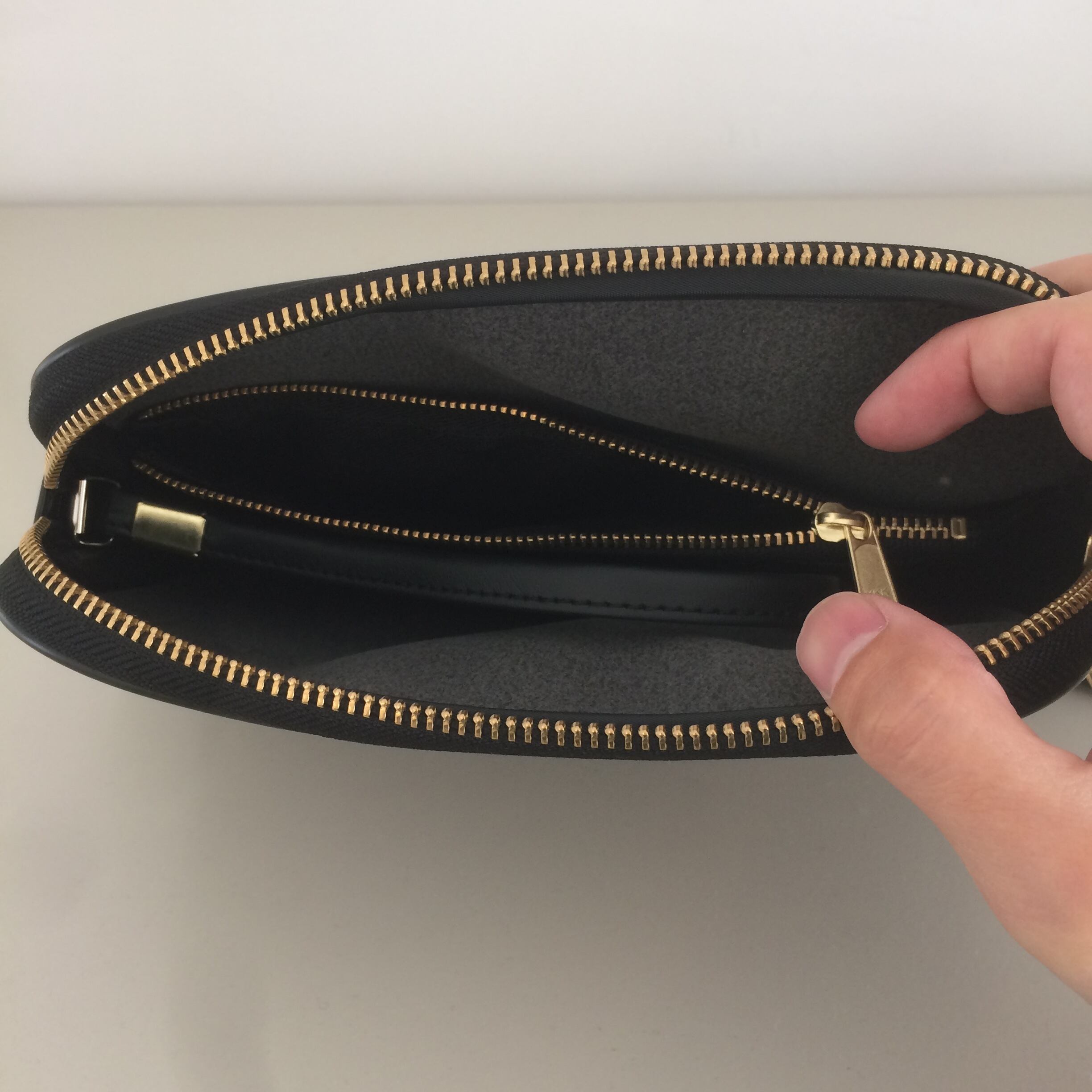 取手もファスナーの外ではなく内に取り付けてあるので