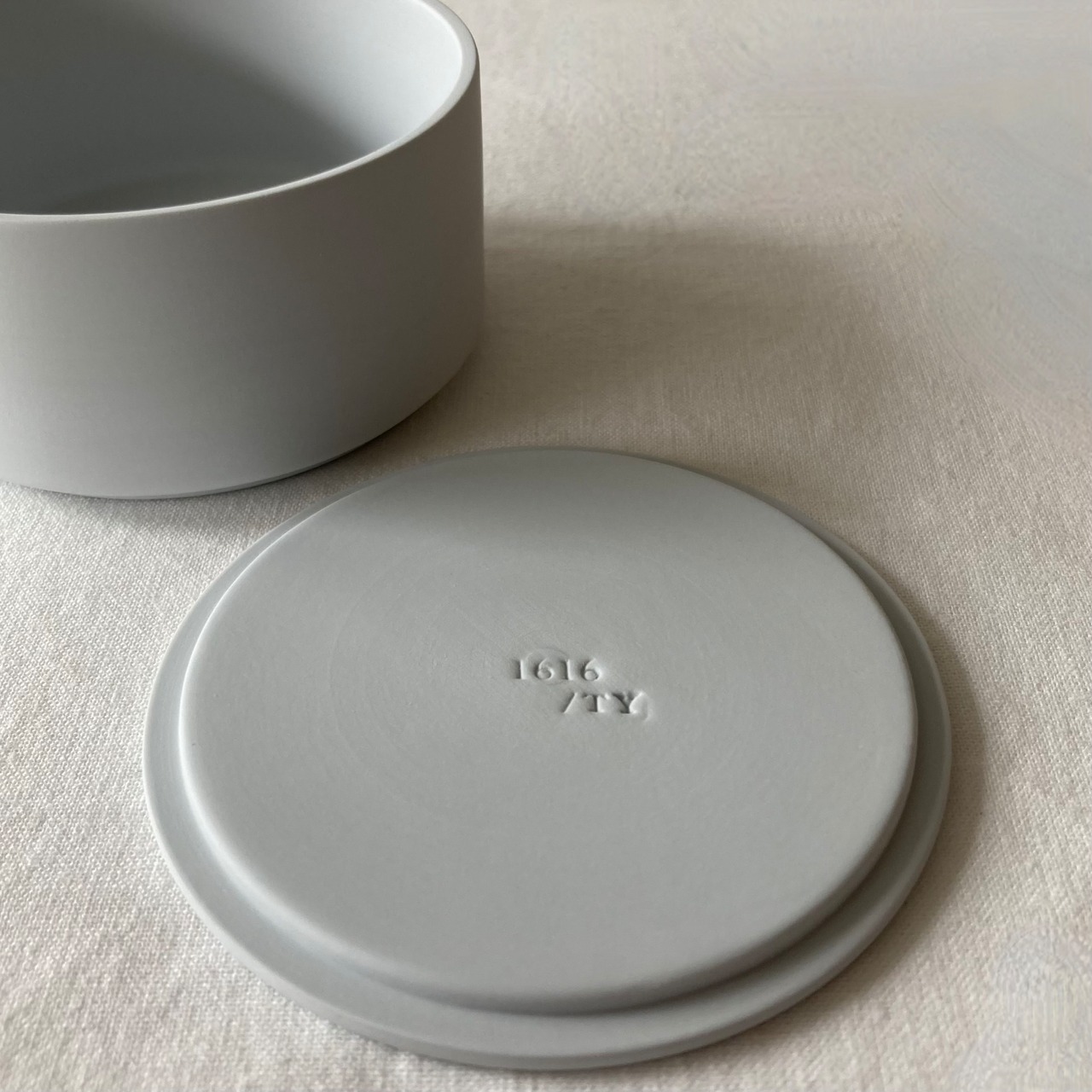 非常に強度のある高密度の陶土を用いたライトグレーの器で、